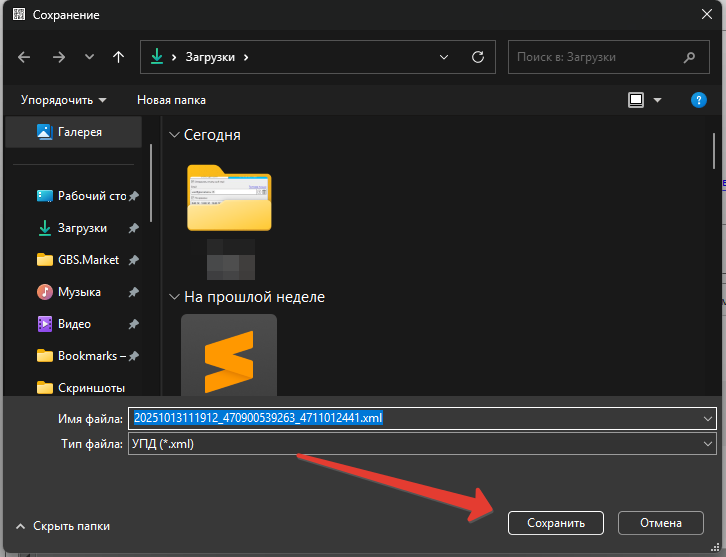 Сохраненный файл будет иметь стандартизированный xml-формат УПД.