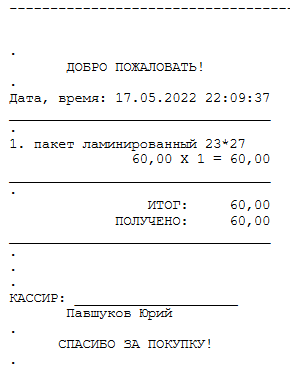 Пример нефискального чека