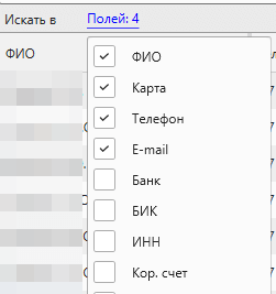 В выпадающем списке доступен выбор как системных полей, так и пользовательских полей контакта. Например, поиск может быть выполнен по полю: