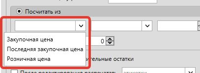 Выберите, на основании какой цены происходит расчет новой розничной цены.
