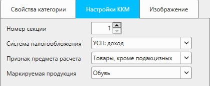 Вкладка "Настройки ККМ" в карточке категории