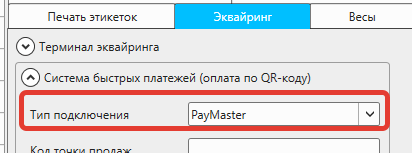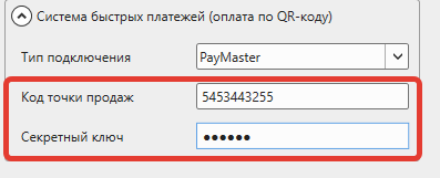 В разделе “Система быстрых платежей” укажите в поле Тип подключения “PayMaster”.