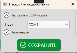 Например, может быть открыто окно настройки подключения через COM-порт, если весы работают через указанный интерфейс.