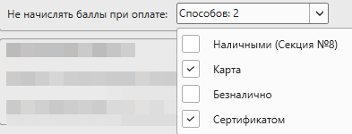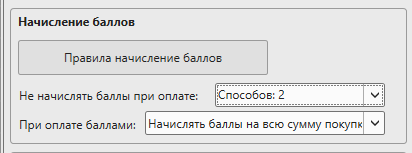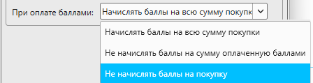 По умолчанию баллы начисляются независимо от способа. Вы можете выбрать способы, при оплате которыми бонусы не будут начисляться.