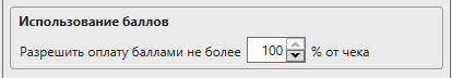 Данная настройка подразумевает процент от суммы чека, который может быть оплачен баллами.