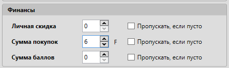 Для параметров личная скидка и сумма баллов значения номеров столбцов оставим равному нулю.