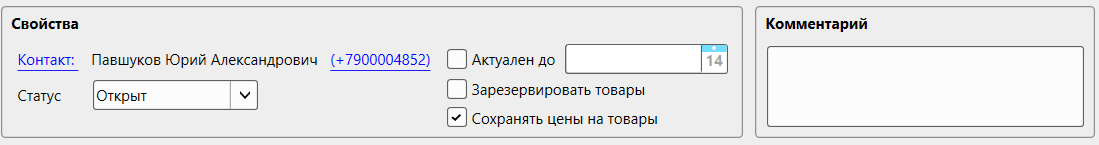 Контакт - это клиент (покупатель), который оформляет заказ. Нажмите на Контакт, чтобы выбрать клиента через форму поиска контактов.
