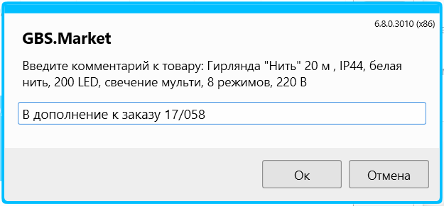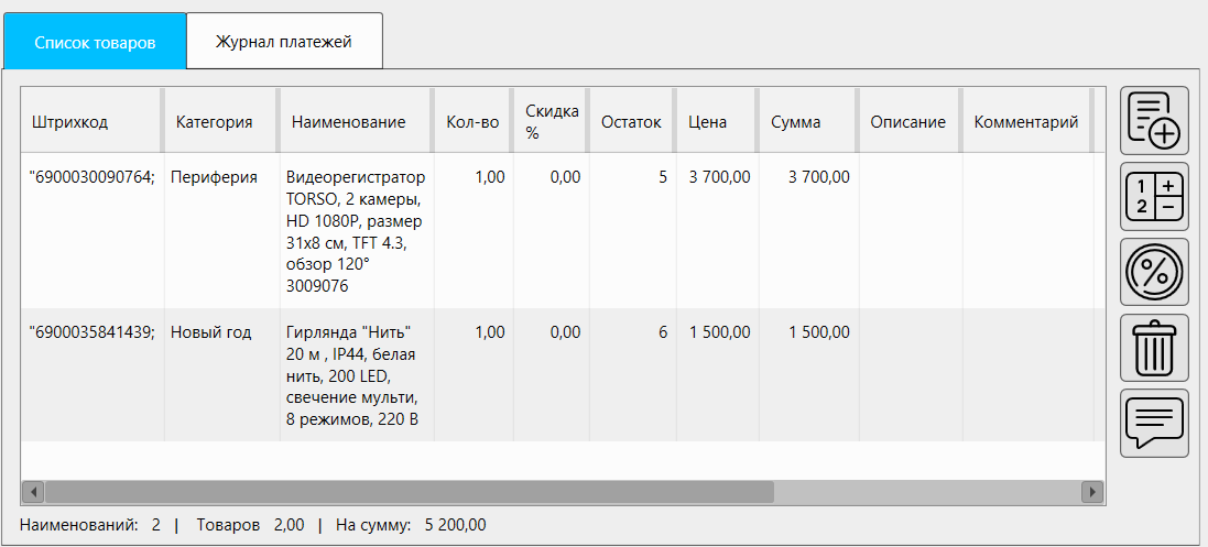 Кнопка «Комментарий»: нажмите, чтобы добавить комментарии к выбранной товарной позиции. Если товар относится к маркированной категории, то в поле «Комментарий» будет его код маркировки.