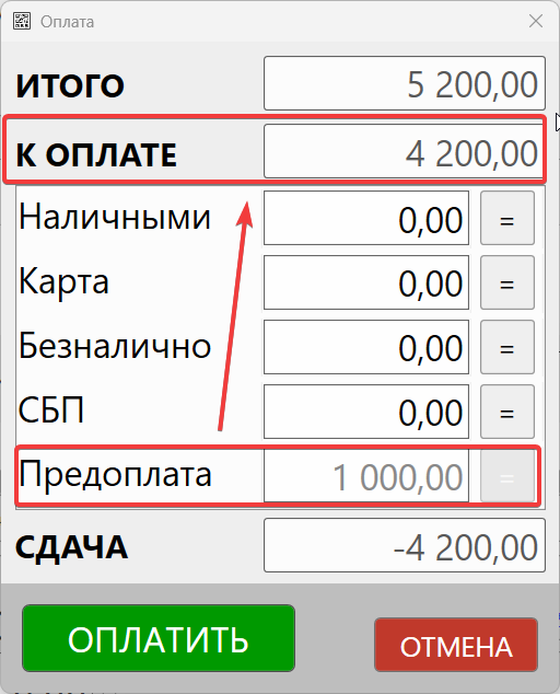 При закрытии такого заказа предоплата будет учтена в итоговом чеке.