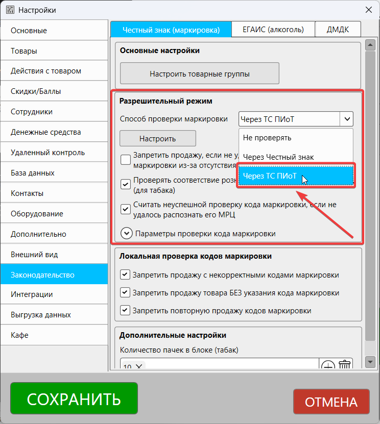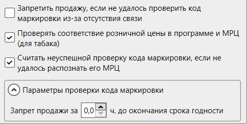 При необходимости активируйте дополнительные опции проверки кодов маркировки.