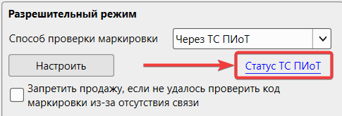 - В блоке «Разрешительный режим» выберите способ проверки «Через ТС ПиоТ»