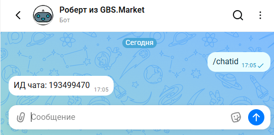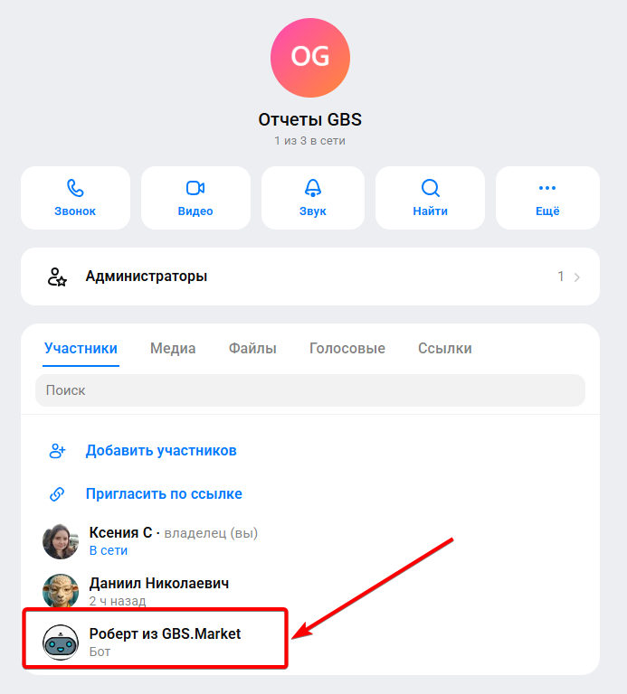 - Добавьте в участники бота Роберт из GBS.Market