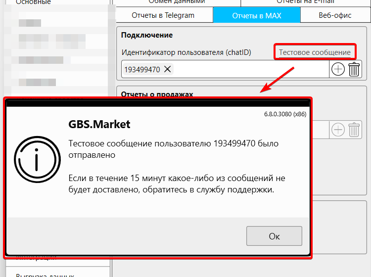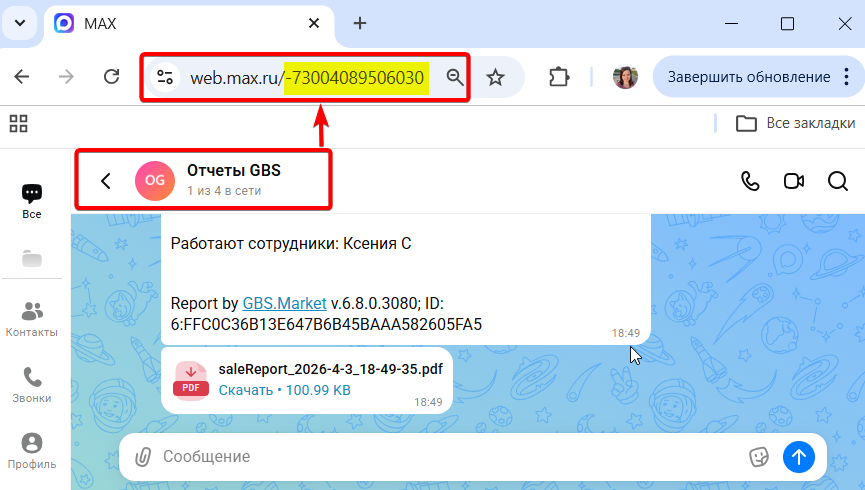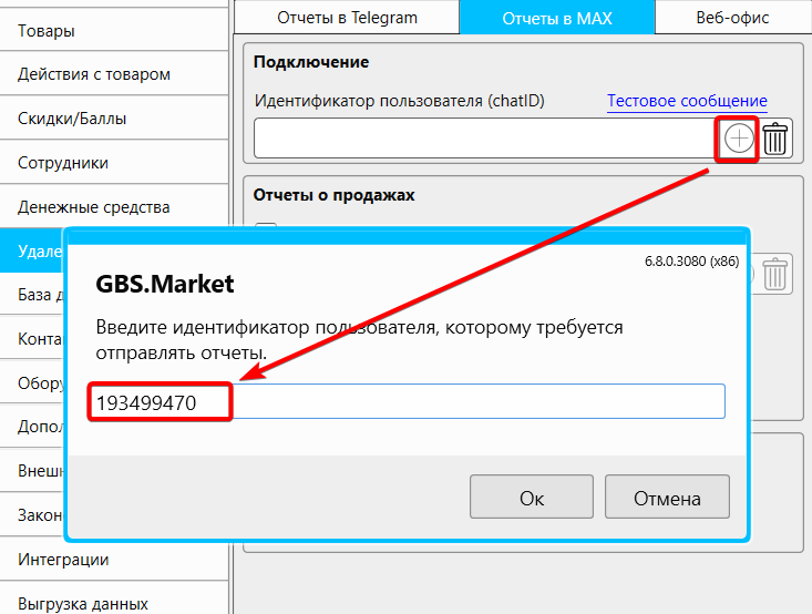 В кассовой программе GBS.Market, начиная с версии v.6.8.0.3080 реализована возможность получения отчетов о работе торговой точки (магазина, кафе) в чат или группу мессенджера MAX.