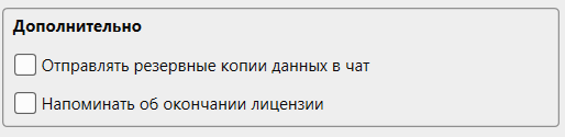 Включите опцию Отправлять резервные копии в чат, чтобы программа присылала резервные копии в MAX. Резервные копии будут создаваться согласно настройкам, указанных в База данных - Резервное копирование. Подробнее о настройке резервного копирования можно узнать в статье.