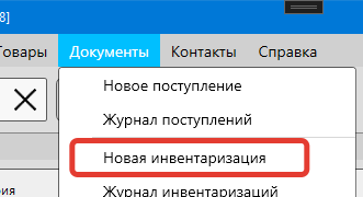 - Из меню главной формы: Документы – Новая инвентаризация
