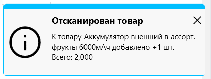 Если будет отсканирован весовой штрихкод, то значение поля “остаток по факту” будет увеличено на кол-во, указанное в штрихкоде.