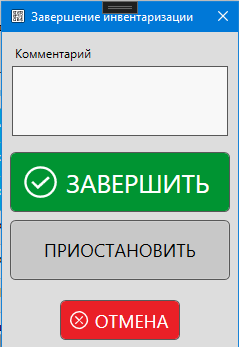 - Окно завершения инвентаризации