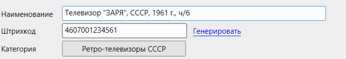 При нажатии на «генерировать» будет сформирован случайный штрихкод для товара.