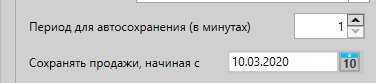 - Период для автосохранения – периодичность в минутах, с которой будет происходить выгрузка данных о продажах