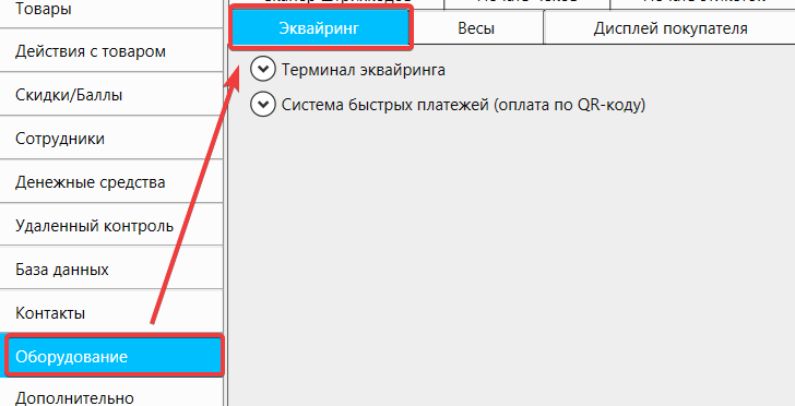 - Перейдите в раздел «Оборудование» - «Эквайринг»