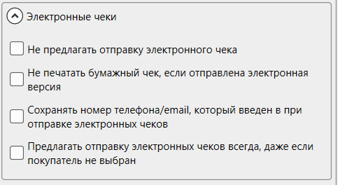 При включении опции, бумажный кассовый чек не будет печататься, если подтверждена отправка электронного чека.