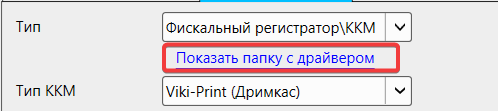 Открывает папку, в которую необходимо скопировать драйвер ККМ.