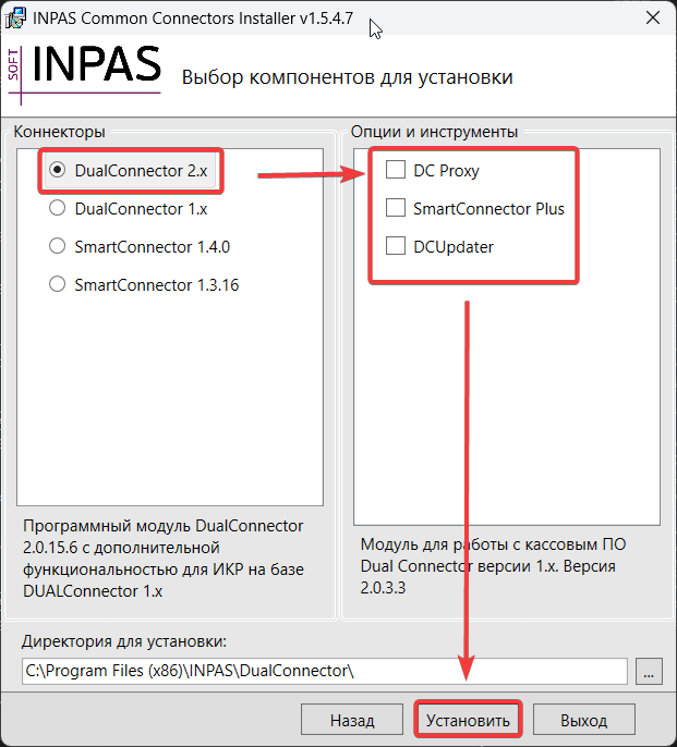 Установка DualConnector