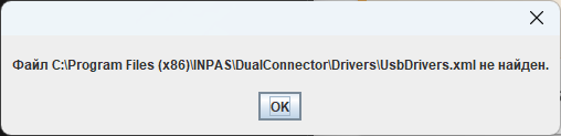Данное сообщение возможно, если вы пропустили установку USB-драйвера эквайринг-терминалов для DualConnector.
