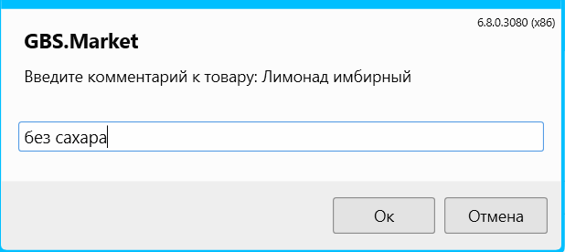 Ввод комментария к блюду в режиме «Кафе»