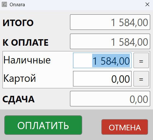 Выбор способов оплаты в режиме «Кафе»