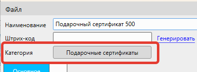 При изменении категории станут доступны настройки для подарочного сертификата.